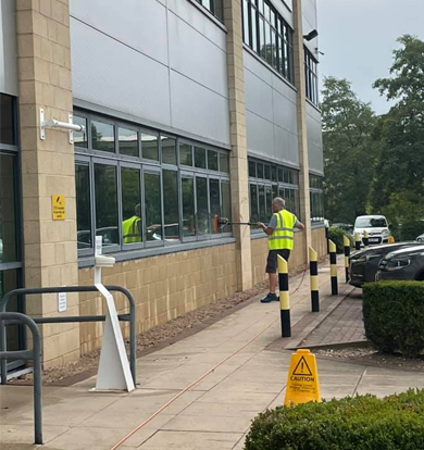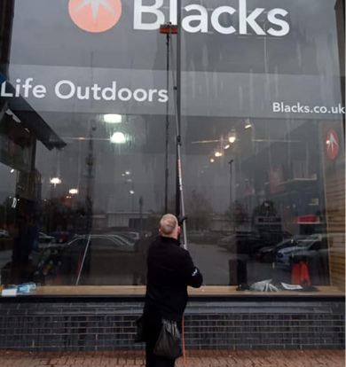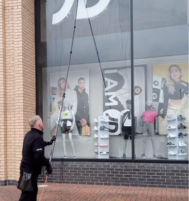 Professional window cleaning for shops, offices and commercial buildings, including high-reach glass.
